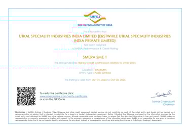 Our company has achieved the highest SMERA rating of SME 1. Starting with a modest rating of SME 5 in the Year 2022 to a rating of SME 1 in the year 2025, is an achievement we cherish!